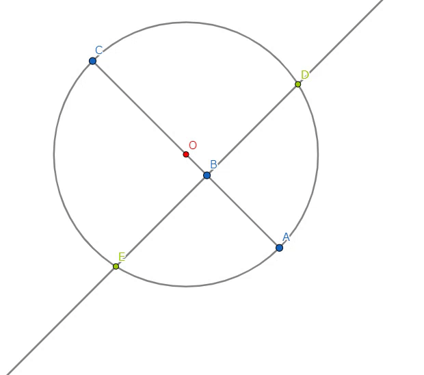 \(AB*BC=DB*BE\) が成立する(方べきの定理)。